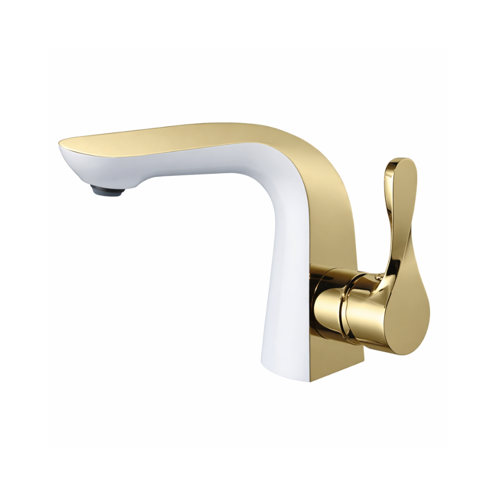 Culoarea albă cu detalii aurii a acestei baterii adaugă un aspect proaspăt și curat în designul băii. Finisajul alb strălucitor conferă un aspect plin de lumină și eleganță, integrându-se armonios în orice stil de amenajare.