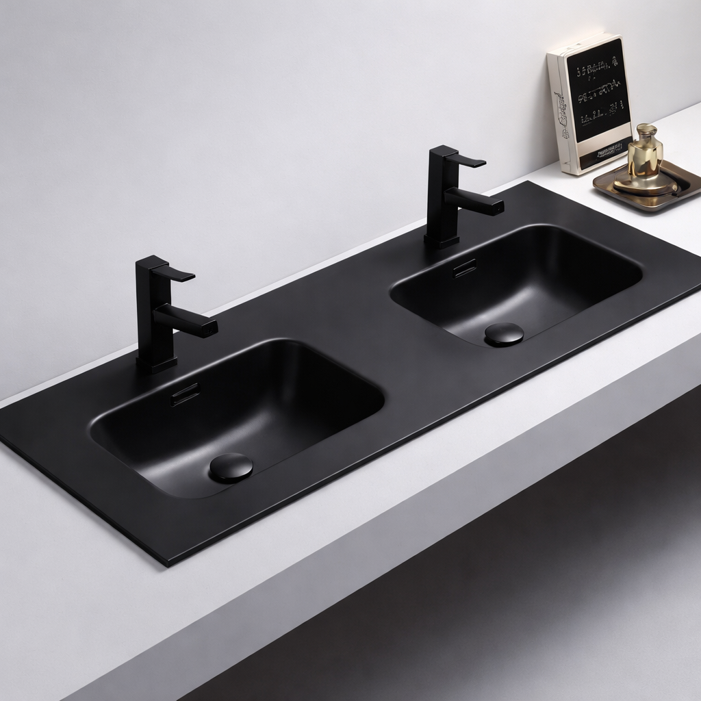 Suprafață Ușor de Curățat: Finisajul neted permite curățarea rapidă și eficientă, menținând aspectul impecabil al lavoarului.