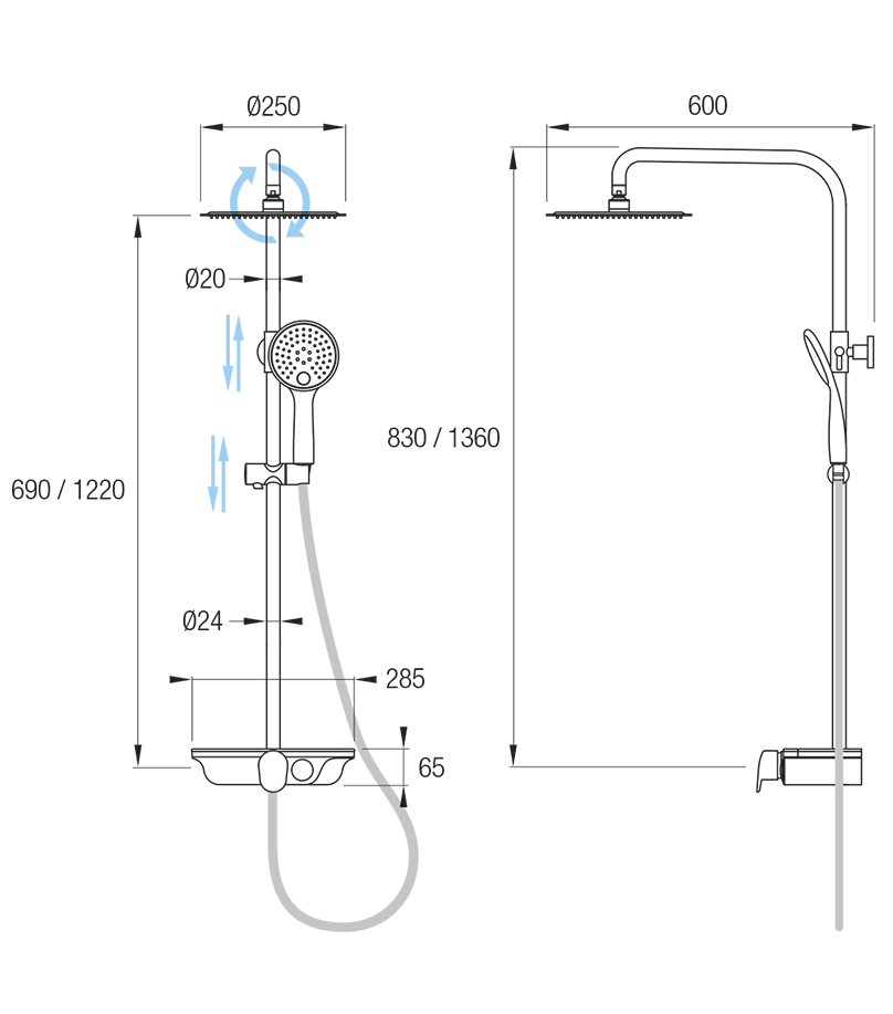 Butoanele de control îți oferă opțiunea de a alege între două moduri diferite: bratul fix și capul de duș. Fiecare mod are propriile sale avantaje, astfel încât să poți experimenta o experiență personalizată și reconfortantă în fiecare duș.